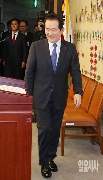 정세균 국회의장이 15일, 서울 여의도 국회서 열린 신년 기자간담회를 위해 이동하고 있다.