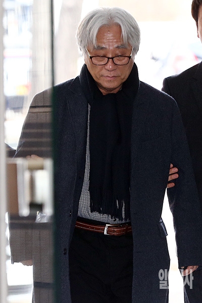 극단 단원들에게 성폭력을 가한 혐의를 받는 이윤택 전 연희단거리패 예술감독이 23일 오전 서울 서초구 서울중앙지법에 영장실질심사를 받기 위해 출석하고 있다.