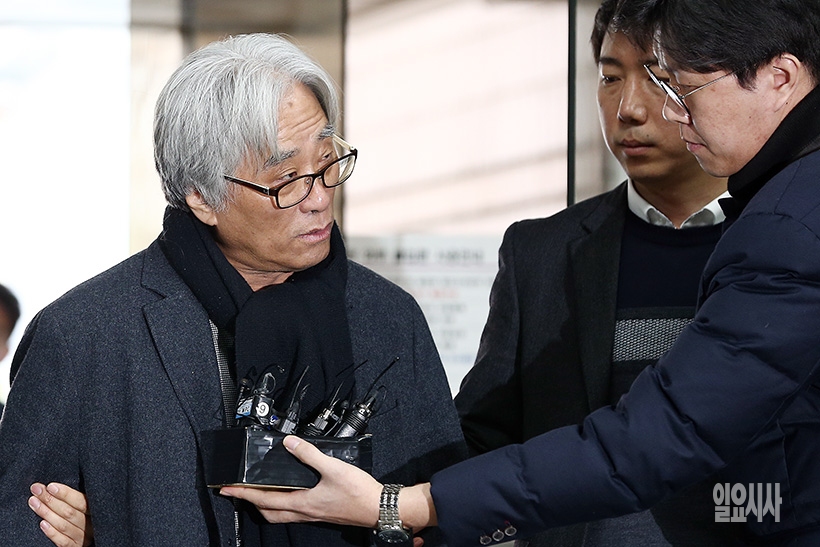 극단 단원들에게 성폭력을 가한 혐의를 받는 이윤택 전 연희단거리패 예술감독이 23일 오전 서울 서초구 서울중앙지법에 영장실질심사를 받기 위해 출석하고 있다.
