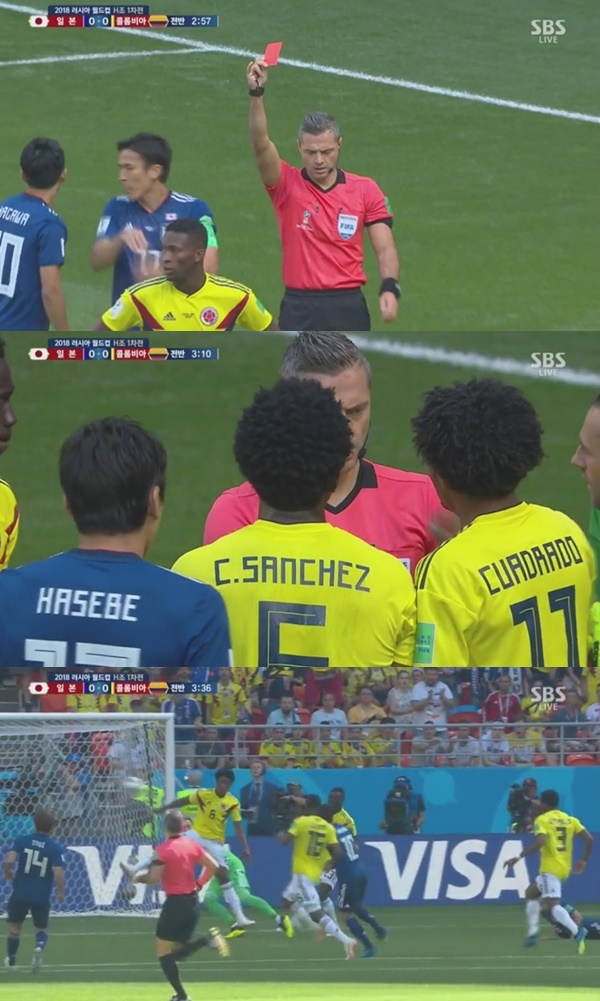[일요시사 취재2팀] 김민지 기자 = 콜롬비아와 일본이 격돌을 펼치고 있는 가운데 콜롬비아의 카를로스 산체스가 퇴장을 당했다.