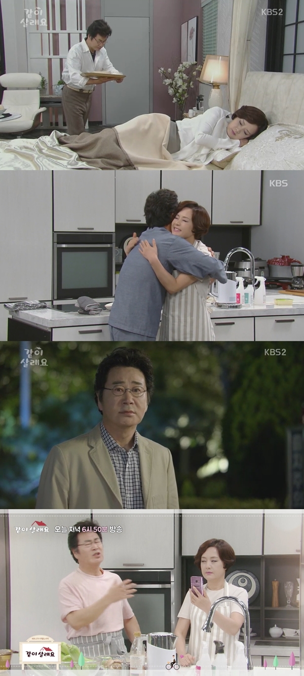 25일 방송된 KBS 2TV <같이 살래요>에서는 유동근(박효섭 역)이 결혼을 앞두고 갑작스레 이상해진 장미희(이미연 역)의 곁을 지극정성으로 지키는 모습이 그려졌다.