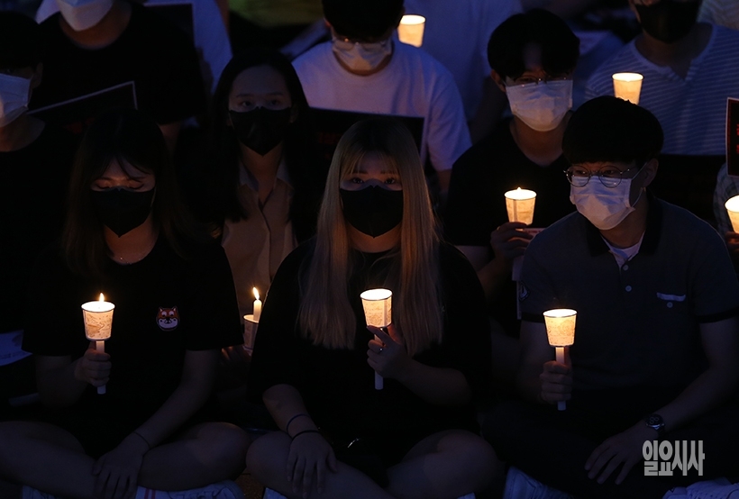 30일 서울 안암동 고려대학교 중앙광장서 총학생회 주관으로 열린 조국 법무부장관 후보자 딸 입시비리 의혹 진상규명 촉구 2차 촛불집회서 학생들이 촛불을 들고 있다. 일요시사=문병희 기자(moonphoto@ilyosisa.co.kr)