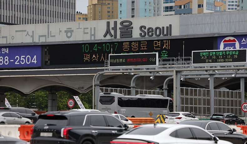 한국도로공사에 따르면 이날 오전 8시 기준 서울 요금소 출발 시 주요 도시에 도착하는 예상 소요 시간은 ▲부산 7시간30분 ▲울산 7시간10분 ▲광주 6시간30분 ▲대구 6시간20분 ▲강릉 3시간50분 ▲대전 3시간20분으로 집계됐다.