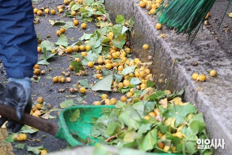은행나무는 자동차 배기가스나 대기오염 물질을 흡수해 공기를 정화하는 능력이 있다고 알려져 있다. 하지만 은행나무 암나무에서 열리는 열매의 악취 등으로 불편이 발생하고 있다. 이에 각 지자체는 은행나무 열매 조기 수확과 낙과 청소 작업을 매해 가을철에 진행해 오고 있다.