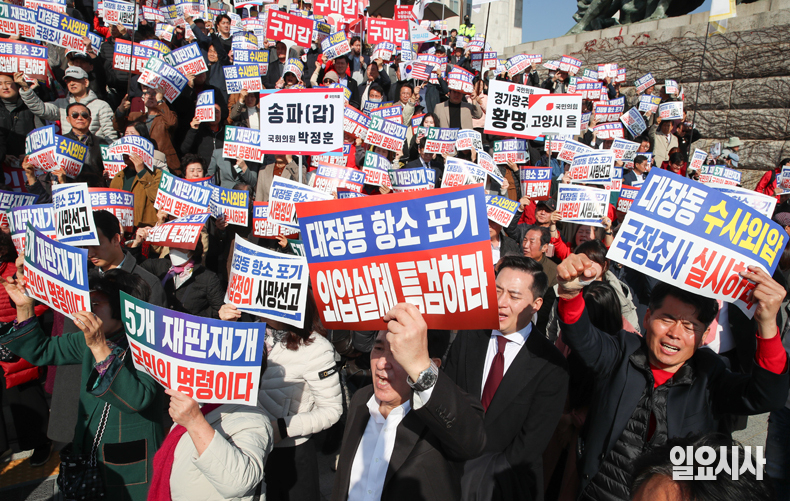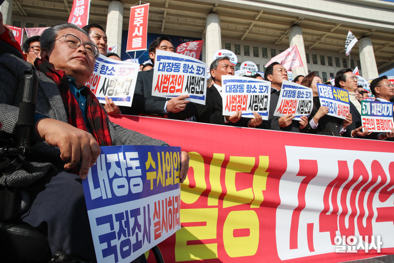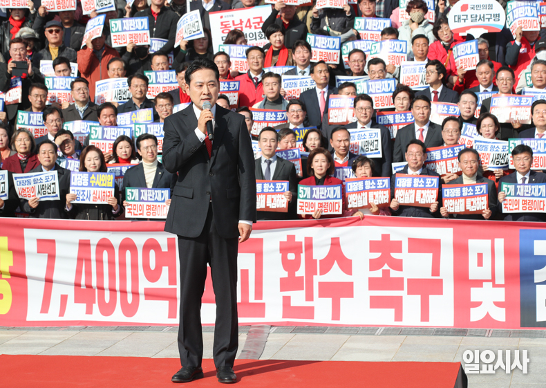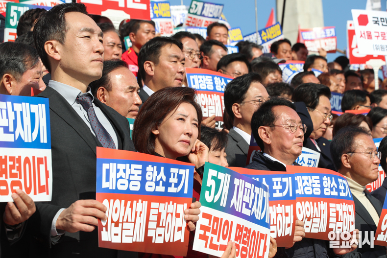 이날 규탄대회에서 장 대표는 “항소 포기는 이재명에 대한 공소 취소로 가기 위한 시작에 불과하다”며 “이재명 대통령은 본인 스스로 ‘죄를 지었으면 벌받는 것이 마땅하다’고 말했다. 근데 자신만이 예외가 되려고 하고 있다”고 이야기했다.