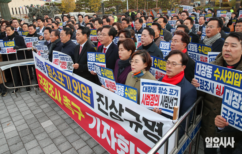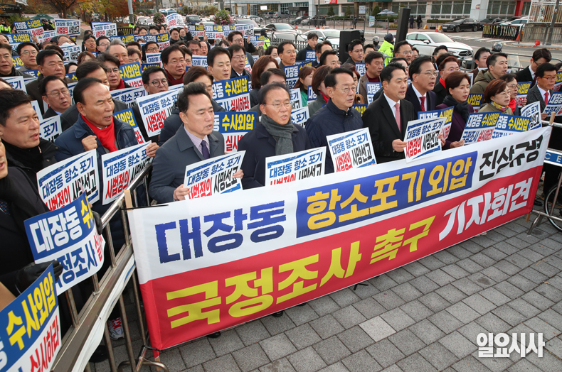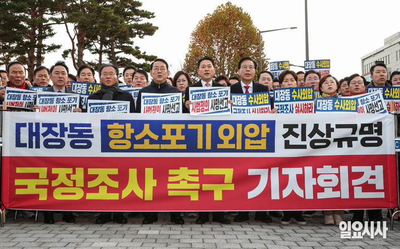 이날 기자회견에서 국민의힘은 대장동 사건 항소포기와 관련해서 진상규명을 위한 국정조사 등을 촉구했다.
