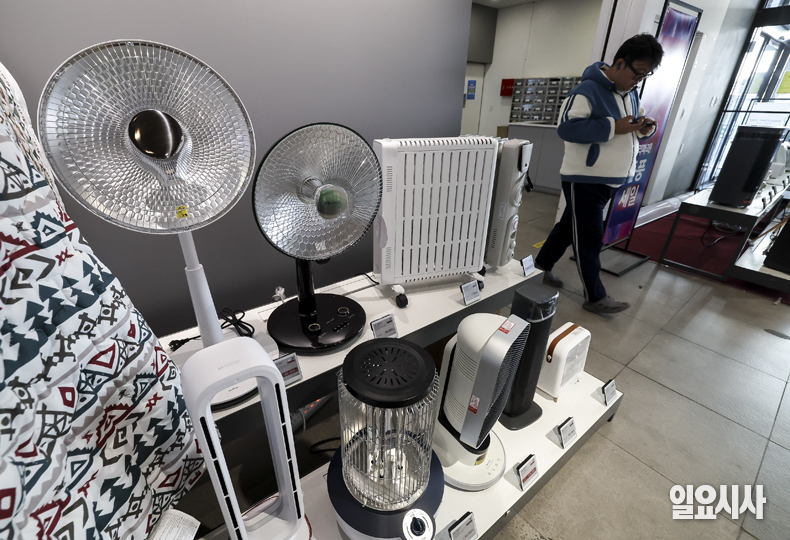 북쪽에서 찬 공기가 유입되며 올 가을 가장 추운 날씨를 보이고 있는 18일 서울 시내의 한 대형마트에 난방용품이 진열되어 있다.