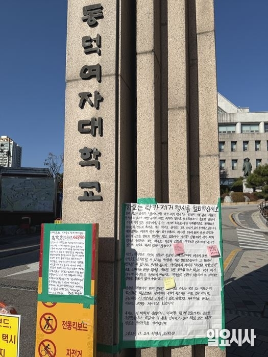 교내 곳곳에는 학생들의 심정이 담긴 대자보가 잇따라 붙기 시작했다. 졸속으로 추진되는 공학 전환과 교내 경비 투입으로 불안감이 조성됐다는 의견 등 다양한 내용이었다. 정문 기둥에 부착된 가장 큰 대자보는 “래커 시위 복구 비용으로 대학이 학생에게 요구했던 54억원의 산정 근거와 논리적 구조를 밝히고 있지 않다. 학생을 향한 압박으로 느껴지는 행사를 취소하라”는 내용이 담겼다.