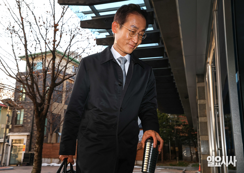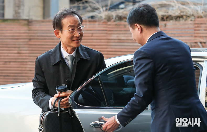 김호철 감사원장 후보자가 9일 오전 서울 종로구 금융연수원에 마련된 인사청문회 준비 사무실로 출근하며 취재진의 질문에 답하고 있다.