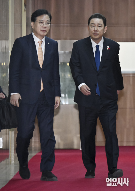 이날 양당 원내대표는 본회의를 앞두고 우원식 국회의장과 함께 회동했지만 이견 차이를 좁히지 못했다.