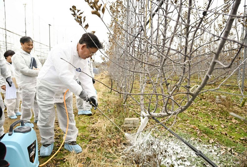 KCC와 농촌진흥청은 지난달 16일 동절기 사과 과수원 관리 현장점검 및 숲으로트리가드 시연회를 열고, 실제 사과나무에 제품을 도포하는 과정을 통해 시공 편의성과 현장 적용성을 확인했다. 특히 이승돈 농촌진흥청장은 현장에서 직접 제품을 시연해 동절기 과수 피해 예방을 위한 기술적 가능성을 점검했다.