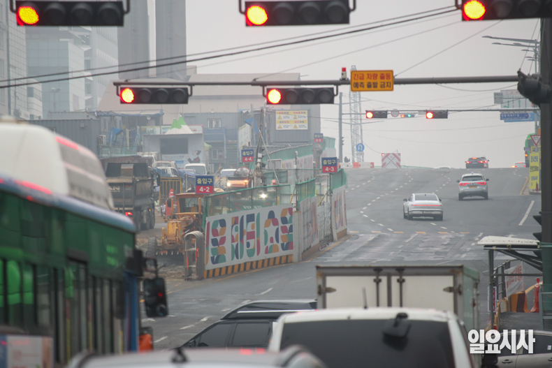 미세먼지가 기승을 부린 16일 오전 서울 강남구 삼성역교차로 일대에서 마스크를 쓴 시민들이 출근길을 서두르고 있다.