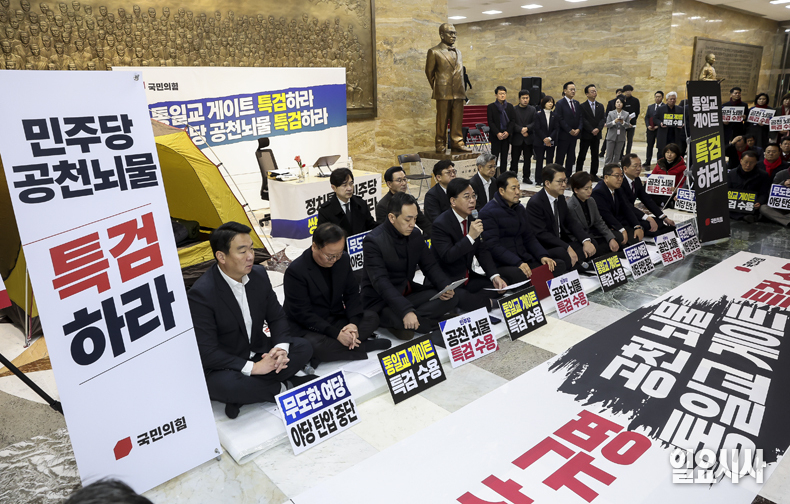 이날 로텐더홀 단식농성장에서 열린 최고위원회의에서 장 대표는 "점차 한계가 오고있다"며 "목숨을 걸고 국민께 호소드리고 있다. 대한민국의 미래를 위해 국민 여러분께서 함께 힘을 보태 달라"고 호소했다.