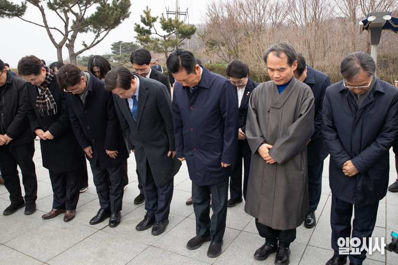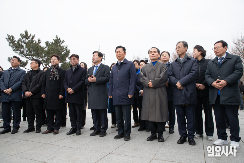 더불어민주당 정청래 대표가 11일 오전 인천 강화군 강화평화전망대 망배단을 찾아 참배하고 있다.