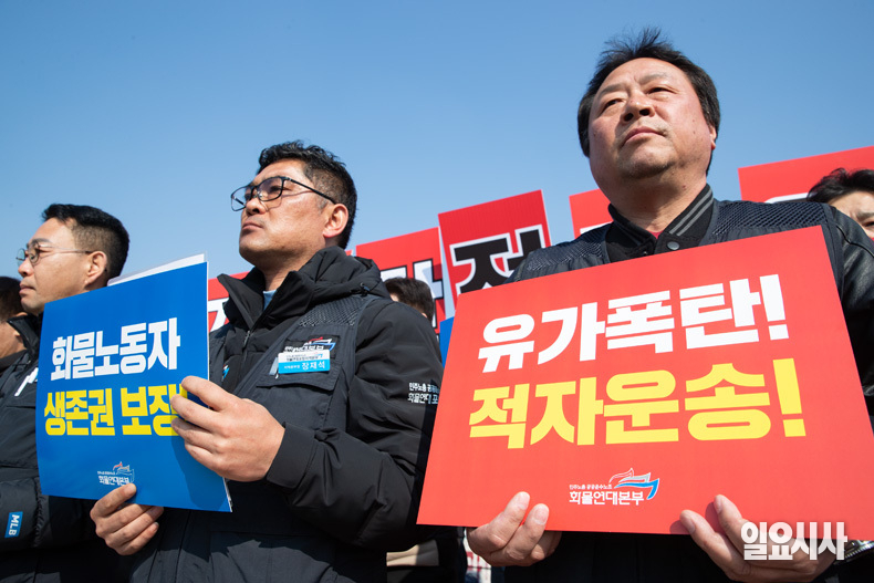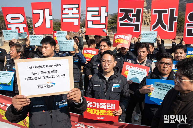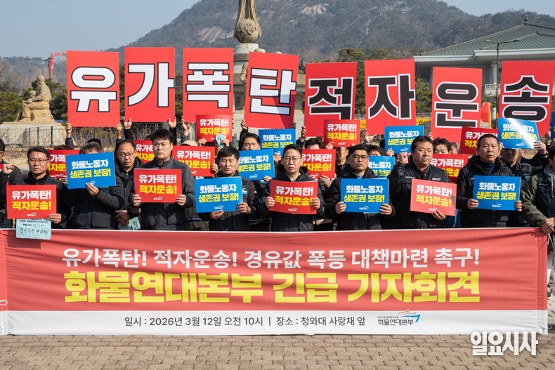 이날 기자회견에서 이들은 “미국과 이스라엘의 이란 침공으로 인한 유가폭등으로 화물노동자의 소득 감소가 심각한 상황”이라며 “25톤 대형 화물자동차의 경우, 유가 300원 상승 시 월 120만원 이상 추가 유류비가 발생한다. 운송비용이 늘어도 운임에 반영되지 않고 화물노동자의 지출로 전가되는 운임구조 때문”이라고 주장했다.
