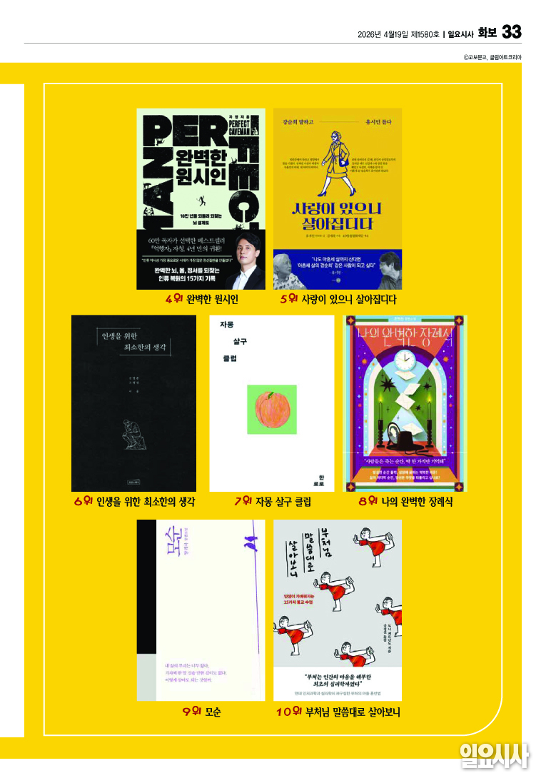 대한민국은 지금 어떤 책을 읽고 있을까. 쏟아지는 신간 속에서 좋은 책을 고르는 일은 쉽지 않다. 일단 영화의 인기가 서점가로 확산된 모습이 눈에 띈다. 교보문고가 집계한 4월 1주 차 베스트셀러를 알아봤다. ⓒ교보문고