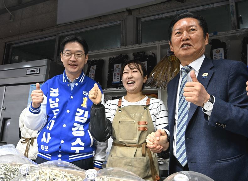 18일에는 울산을 찾아 김상욱 울산시장 후보와 울산 남부갑에 출마하는 전태진 후보 지원사격에 나섰다. 이날 정 대표는 남구 신정시장에서 시민들과 만난 뒤 “울산은 민주당이 어려운 지역이라고 많이 말씀한다”면서도 “오늘 와서 보니까 그렇지 않다”고 말했다.