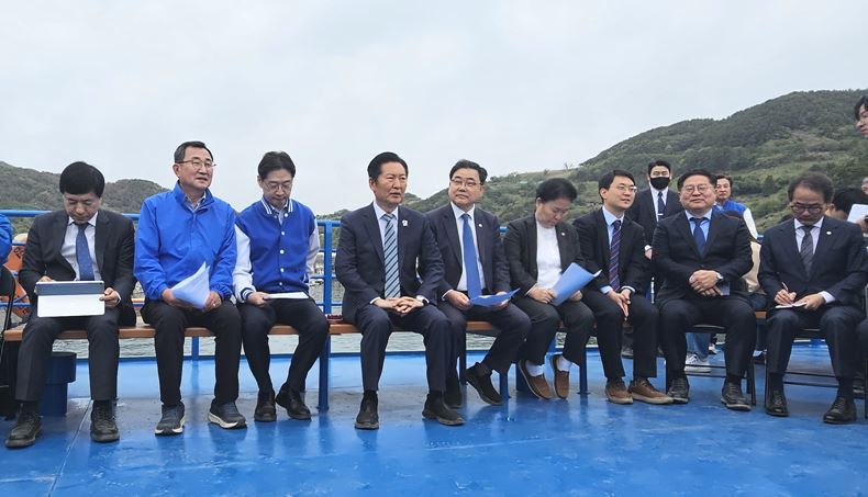 지난 22일에는 약 한 달 만에 경남을 다시 찾았다. 이날 정 대표는 욕지도 앞바다에서 선상 현장 최고위원회의를 주재하고 “육지 중심적인 사고에서 잠시 벗어나 섬마을 주민들의 삶의 애환을 듣고자 한다”고 설명했다. 최고위에는 김경수 경남도지사 후보와 허성무 경남도당위원장 등이 함께했다.