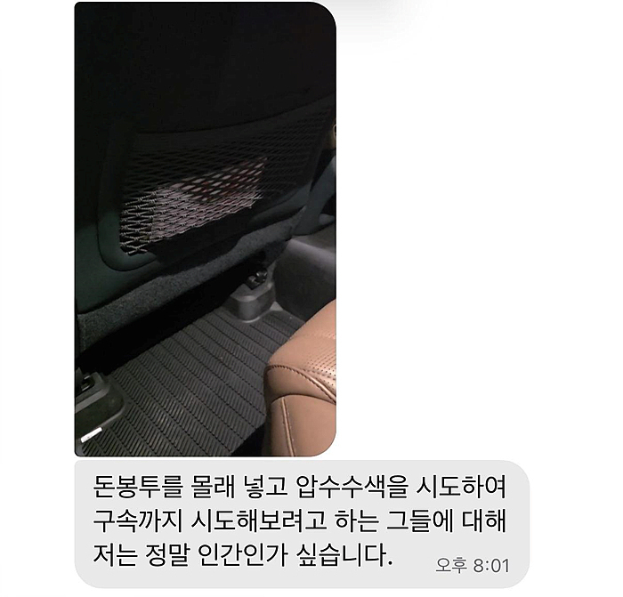 또 “최근에는 미행으로 의심되는 상황과 차량 침입 정황까지 이어지면서 불안감이 커지고 있다”고도 했다. 재개발 사업을 방해하려는 세력이 돈 봉투를 몰래 넣고 뇌물을 받은 것처럼 꾸며 압수수색과 구속을 시도하고 있다는 것이다.