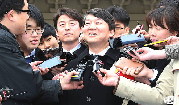 안철수 전 서울대 교수가 12일 오전, 서울 동작구 국립현충원을 찾아 분향 후 취재진들의 질문을 듣고 웃음 짓고 있다.