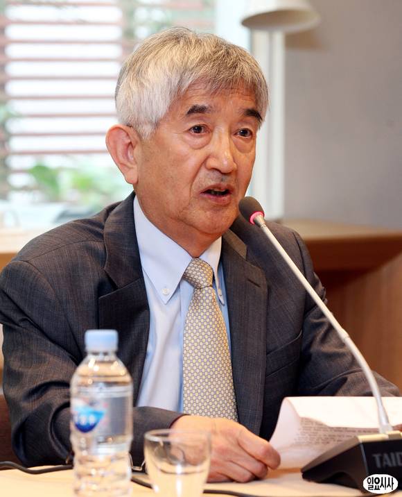 안철수 무소속 의원의 싱크탱크격인 정책네트워크 '내일' 이사장에 임명된 최장집 교수가 22일 오후 서울 마포구 서교동 창비카페에서 열린 기자회견에 참석, 취재진의 질문에 답하고 있다.