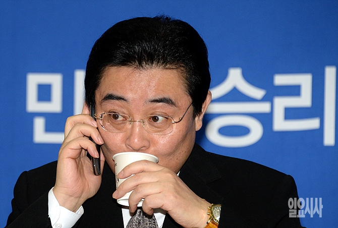 18일 오전, 전병헌 민주당 원내대표가 서울 여의도 국회에서 열린 원내대책회의에 참석해 전화통화를 하고 있다.