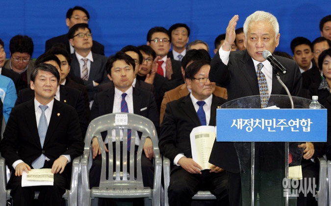 김한길 새정치민주연합 공동창당준비위원장이 18일 경기도 수원실내체육관에서 열린 새정치민주연합 경기도당 창당대회에서 인사말을 하고 있다.