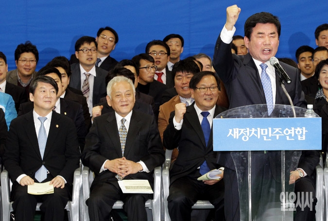경기도지사 출마를 선언한 김진표 의원이 18일 경기도 수원실내체육관에서 열린 새정치민주연합 경기도당 창당대회에 참석해 축사를 하고 있다.