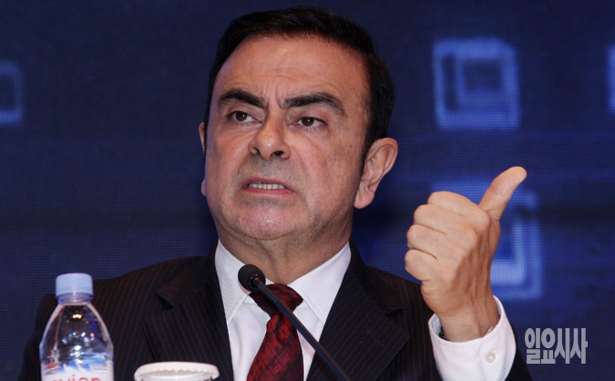 카를로스 곤 르노-닛산 얼라이언스 회장이 2일 서울 중구 신라호텔에서 열린 르노삼성자동차 비전선포 기자간담회에서 취재진의 질문에 답하고 있다.