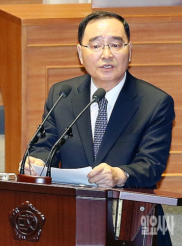 정홍원 국무총리가 3일 오후 서울 여의도 국회에서 열린 323차 국회(임시회) 3차 본회의 정치 부문 대정부 질문에서 질의에 답변하고 있다.