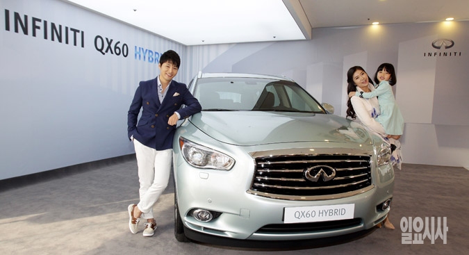 인피니티가 7일 서울 서초동 인피니티 서초 전시장에서 7인승 럭셔리 크로스오버 '인피니티 QX60 하이브리드'를 선보이고 있다. 국내 최초 7인승 하이브리드 모델인 QX60은 기존 가솔린 모델(2013년형) 대비 30% 이상 향상된 복합연비, 최상의 안락함을 제공하는 넉넉한 실내 공간, 부드러운 주행성능과 정숙성 등 다양한 매력을 제공하며 더불어, 2.5리터 QR25 수퍼 차저 엔진(233ps) 및 15kw(20ps) 전기모터를 조합해 최고출력 253ps의 강력한 성능을 자랑한다.