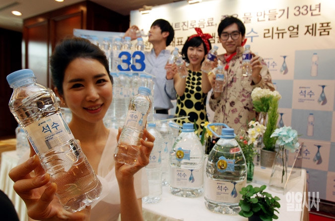 하이트진로음료가 7일 서울 중구 세종호텔에서 '석수' 리뉴얼 제품을 출시하고 있다. 소백산맥을 모티브로 한 고급스러운 디자인과 최신 안전 설비와 시스템을 통해 향상된 품질로 리뉴얼 출시된 '석수'는 1982년 출시된 국내 대표 먹는샘물 제품으로 세계 3대 광천수 지역인 충북 청원군 소백산맥 지하 200m 천연 암반수를 사용했다.