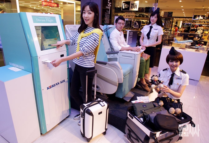 신세계백화점이 대한항공과 제휴해 7일 주말 도깨비 여행객이 늘어나는 봄 시즌을 겨낭해 최신 트렌드 콘셉트 매장인 '4N5' 일부 자투리 공간에 고객들이 쇼핑 도중 가상으로 체험해 볼 수 있도록 실제 운항 중인 항공기의 것과 똑같은 프레스티지석과 기내용품, 가상 무인항공권 발권기를 설치한  'Dream Flight' 전시를 서울 신세계백화점 본점에서 진행한다. 전시 기간은 4월 24일까지.