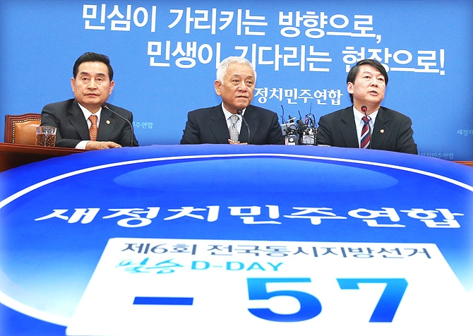 새정치민주연합 김한길·안철수 공동대표가 8일 오전, 서울 여의도 국회에서 기초공천관련 관련 기자회견을 갖고 있다.