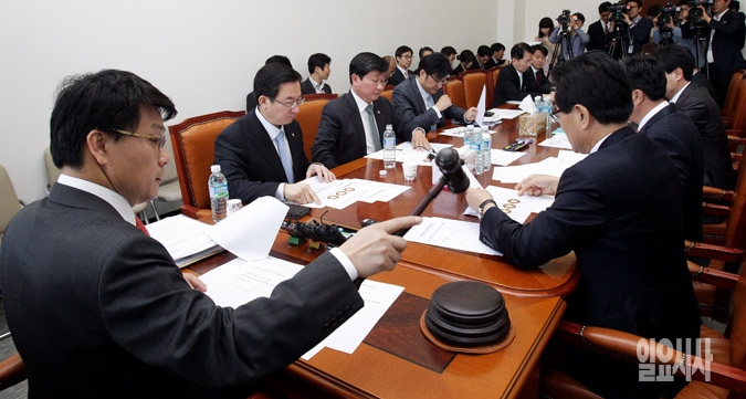 국회 운영위제도개선소위 위원장인 윤상현 새누리당 원내수석부대표가 8일 서울 여의도 국회에서 열린 운영위 소위 회의에서 의사봉을 두드리며 개회를 선언하고 있다.