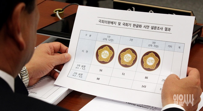 [포토] 국회의원 배지와 국회기 한글화 시안 설문조사 결과