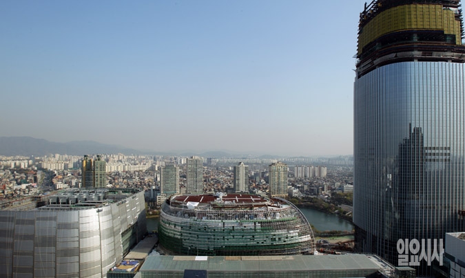 8일 오전 서울 송파구 신천동 제2롯데월드 엔터테이먼트동 12층 옥상에서 배관작업을 하던 인부가 사망하는 사건이 발생했다. 사진은 이날 제2롯데월드의 모습.