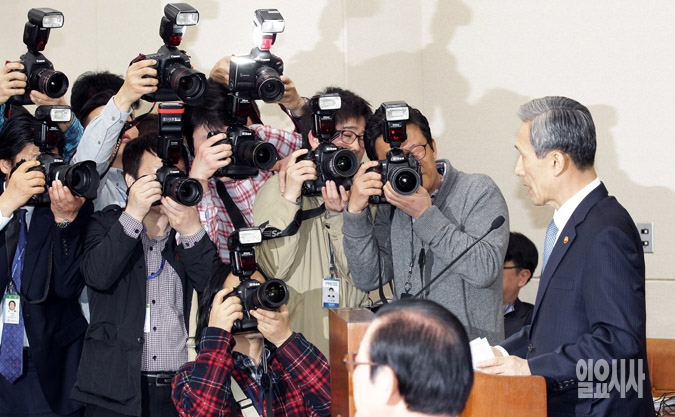김관진 국방부 장관이 9일 서울 여의도 국회에서 열린 국방위원회 전체회의에서 북한 무인정찰기 관련 현안보고를 하고 있다.