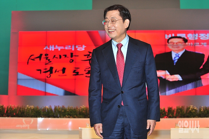 9일 오후, 서울 여의도 MBC 사옥을 찾은 새누리당 김황식 후보가 첫 TV 토론회에 참석해 활짝 웃고 있다.