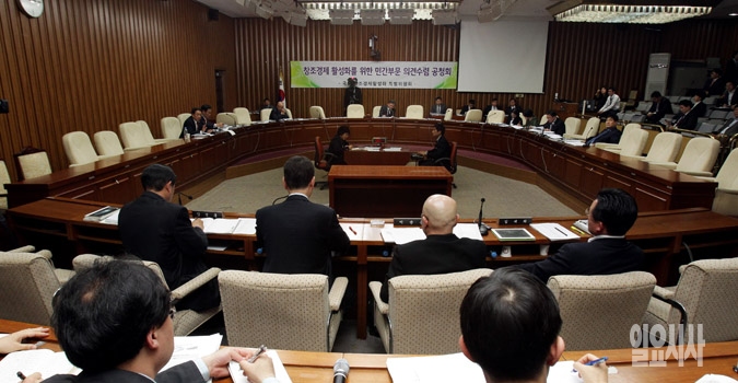 국회 창조경제활성화 특별위원회가 9일 서울 여의도 국회에서 창조경제활성화를 위한 민간부문 의견수렴 공청회를 갖고 있다.