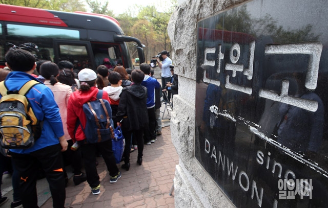 16일 오전 진도 해상에서 안산 단원고 학생 325명과 승무원 등 477명이 탑승한 여객선이 침몰한 가운데 이날 경기 안산 단원고에서 비보를 듣고 달려온 학부모들이 진도로 향하는 버스를 타고 있다.