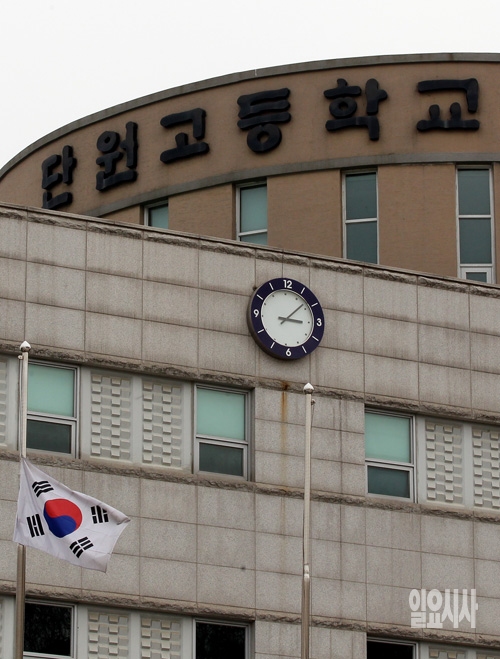사고 여객선 세월호를 타고 수학여행을 떠난 경기 안산 단원고등학교에 17일 조기가 걸려 있다.