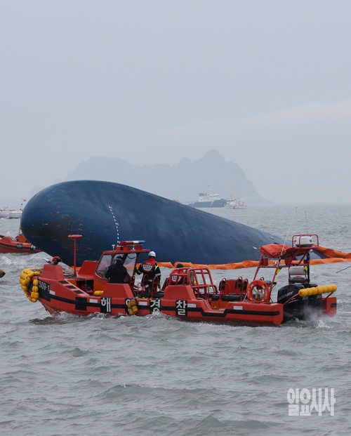 여객선 '세월호' 침몰 이틀째인 17일 전남 진도군 관매도 사고 해역에서 군·경 합동 구조팀이 구조작업을 벌이고 있다.