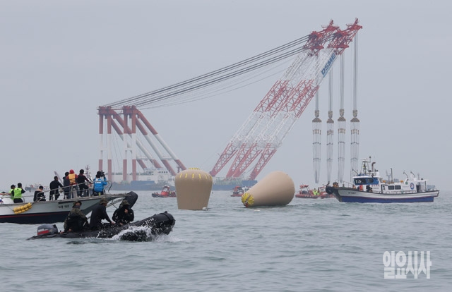 [포토] 세월호 침몰 사고, 해상크레인 투입