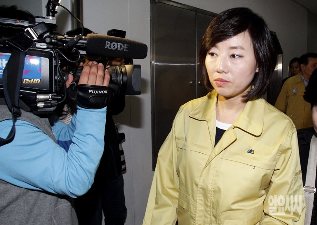 조윤선 여성가족부 장관이 20일 전남 진도군청에서 열린 특별재난구역 선포 등을 논의하기 위한 관계장관회의를 마친 뒤 나서고 있다.