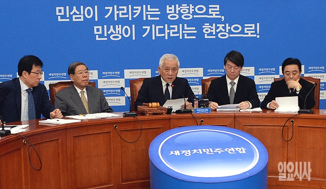 김한길 새정치민주연합 공동대표가 21일 오전, 서울 여의도 국회에서 열린 새정치민주연합 최고위원 및 여객선침몰사고 대책위원장단 연석회의에 참석해 모두발언하고 있다.