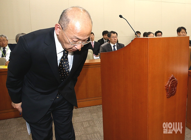 23일 오후, 문형표 보건복지부 장관이 서울 여의도 국회에서 열린 보건복지부 전체회의에서 업무보고 직후 인사하고 있다.
