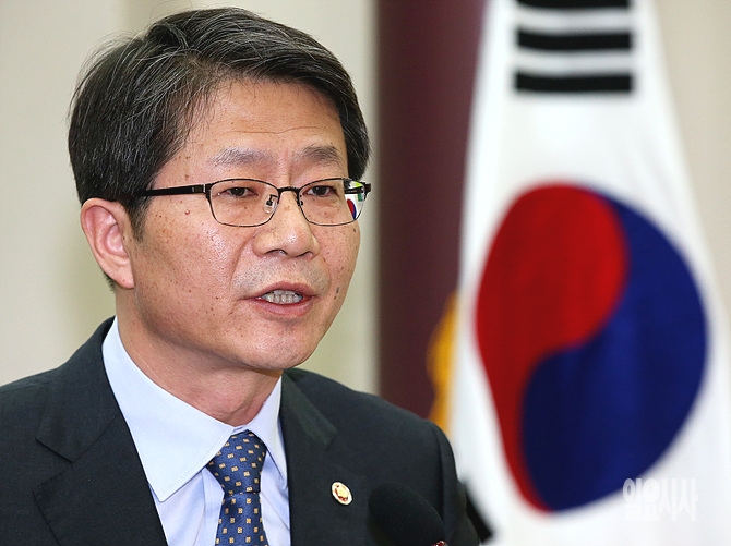 28일 오전, 서울 여의도 국회에서 새정치민주연합 심재권 의원 주최로 열린 '북핵문제, 어떻게 할 것인가' 토론회 직전 류길재 통일부 장관이 축사를 하고 있다.