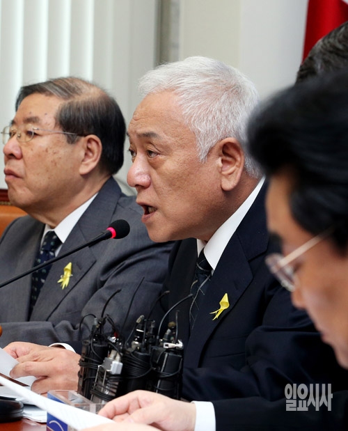 김한길 새정치민주연합 공동대표가 30일 서울 여의도 국회에서 열린 최고위원 및 여객선침몰사고 대책위원장단 연석회의에서 모두발언을 하고 있다.