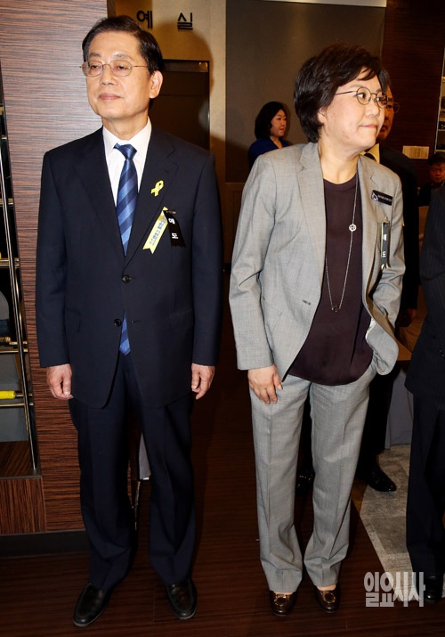 30일 서울 종로구 성균관대학교 유림회관에서 열린 '6ㆍ4 지방선거 새누리당 종로구 시의원 후보 선출대회'에서 김황식(왼쪽), 이혜훈 서울시장 경선후보들이 참석해 있다.